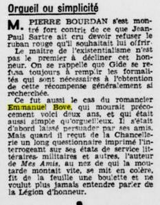 Très belle découverte de David Nahmias : Emmanuelle Bove et la Légion d'Honneur. Dans le périodique de Paris "Gavroche" du 3 juillet 1947.